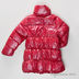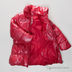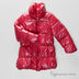 Удлиненная куртка для девочки, красного цвета. Застегивается на молнию, высокий воротник.