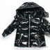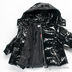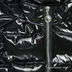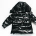 Лаковая куртка прямого кроя с капюшоном застегивается на молнию. Капюшон пристегнут на молнию. Дополнительная застежка на кнопках на капюшоне. В манжеты вставлена резинка, застежка на кнопку. Два передних кармана на молнии, один карман на рукаве на кнопке. Декоративная нашивка на рукаве. Температурный режим до -20.