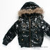 Лаковая куртка прямого кроя с капюшоном застегивается на молнию. Капюшон пристегнут на молнию. Дополнительная застежка на кнопках на капюшоне. Мех отстегивается. Манжеты и низ изделия - трикотажные резинки. Множество карманов. Температурный режим до -20.