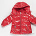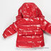 Лаковая куртка прямого кроя с капюшоном застегивается на молнию. Капюшон пристегнут на молнию. Дополнительная застежка на кнопках на капюшоне. В манжеты вставлена резинка, застежка на кнопку. Два передних кармана на молнии, один карман на рукаве на кнопке. Декоративная нашивка на рукаве. Температурный режим до -20.