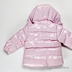 Лаковая куртка прямого кроя с капюшоном застегивается на молнию. Капюшон пристегнут на молнию. Дополнительная застежка на кнопках на капюшоне. В манжеты вставлена резинка, застежка на кнопку. Два передних кармана на молнии, один карман на рукаве на кнопке. Декоративная нашивка на рукаве. Температурный режим до -20.