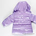 Лаковая куртка прямого кроя с капюшоном застегивается на молнию. Капюшон пристегнут на молнию. Дополнительная застежка на кнопках на капюшоне. В манжеты вставлена резинка, застежка на кнопку. Два передних кармана на молнии, один карман на рукаве на кнопке. Декоративная нашивка на рукаве. Температурный режим до -20.