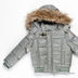 Куртка прямого кроя с капюшоном застегивается на молнию и кнопки. Капюшон пристегнут на молнию. Дополнительная застежка на кнопках на капюшоне. Мех пристегнут на кнопках. Флисовый подклад капюшона. Внутренняя трикотажная манжета. Низ изделия - трикотажная резинка. Два передних кармана. Оригинальная застежка в виде карабина. Декоративная нашивка на рукаве. Температурный режим до -20.