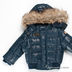 Куртка прямого кроя с капюшоном застегивается на молнию и кнопки. Капюшон пристегнут на молнию. Дополнительная застежка на кнопках на капюшоне. Мех пристегнут на кнопках. Флисовый подклад капюшона. Внутренняя трикотажная манжета. Низ изделия - трикотажная резинка. Два передних кармана. Оригинальная застежка в виде карабина. Декоративная нашивка на рукаве. Температурный режим до -20.