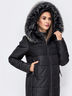 Двухфактурная зимняя куртка с прорезными карманами на полочке. Вшитый капюшон со съемным мехом. Спинка изделия декорирована молнией. Модель утеплена флисом изнутри. Застегивается на молнию спереди, рукава дополнены вязаными манжетами. Утеплитель – биосиликон 300. Изделие рассчитано на температурный режим до -20 °С.