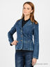 Джинсовая куртка приталенного силуэта. Отложной ворот с лацканами, длинный рукав. Застежка на пуговицы на полочке. Рельефные вытачки. Два передних кармана. Отличный вариант для создания повседневного образа.
