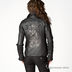 Стильная куртка-пиджак от Ed Hardy с принтом на спине. Ворот отделан металлическими клепками. По рукаву спереди и по спинке пиджак украшен аппликацией из кожи и металлических клепок. На спине вышит логотип марки. Пиджак хорошо сидит по фигуре. Подклад утепленный (стеганная ткань с синтепоном).
