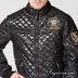 Стильная утепленная стеганная куртка от Ed Hardy черного цвета с врезными карманами на молнии и нашивками в виде герба и логотипа производителя на рукаве и плече. Подклад утепленный.
