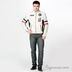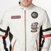 Стильная кожаная куртка от Ed Hardy белого цвета с карманами и декоративными вставками из контрастной кожи с нашивками в виде "черепа" и логотипа производителя. Подклад утепленный.