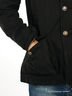 Очаровательная теплая куртка с отложным воротником, длинными рукавами и застежкой на пуговицы. Сзади внизу – декоративный разрез. Спереди два удобных втачных кармана и четыре накладных с клапаном.