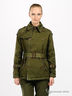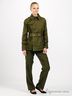 Классическая двубортная женская куртка с застежкой на пуговицы и элегантный пояс. Отложной воротник и длинные рукава с декоративными ремешками. Спереди два удобных втачных кармана на пуговице. Подкладка из искусственного меха. На спинке внизу декоративный разрез.