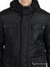 Детали: воротник стойка, капюшон на кулиске и молнии, застегивается на молнию и кнопки, спереди 4 накладных кармана на клапане и кнопках, внутри прорезной карман на пуговице