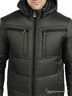Детали: воротник стойка, капюшон на кулиске и молнии, застегивается на молнию, спереди 2 накладных кармана на молнии, 2 прорезных кармана, внутри прорезной карман на молнии и накладной карман на клапане