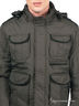 Детали: воротник стойка, скрытый капюшон на кулиске и молнии, застегивается на молнию и кнопки, спереди 4 накладных кармана на клапане и кнопке, 2 втачных кармана, прорезной карман на молнии, внутри 2 накладных кармана на липучке и 2 прорезных кармана на молнии,