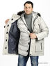 Детали: воротник стойка, капюшон на кулиске с мехом, застегивается на молнию и кнопки, спереди 2 накладных кармана на клапане, 2 прорезных кармана на молнии, внутри карман на молнии