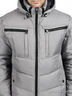 Детали: воротник стойка, капюшон на кулиске и молнии, застегивается на молнию, спереди 2 накладных кармана на молнии, 2 прорезных кармана, внутри прорезной карман на молнии и накладной карман на клапане