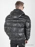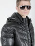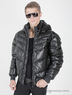 Пуховик короткий, выполнен из мягкой эко-кожи, центральная застёжка - молния, воротник – стойка, карманы прорезные на молнии, по низу куртки и рукаву идет резинка из ткани верха, капюшон отстегивается. Внутри куртка имеет три кармана: два на молнии и один на липучке.