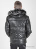 Пуховик прямого кроя средней длины, выполненный из мягкой экокожи. Центральная застёжка - молния, воротник – стойка из основной ткани, капюшон отстегивается, мех чернобурка тоже отстегивается, карманы прорезные на кнопках, нагрудные карманы на молнии, по низу куртки утягивающая кулиска, в рукавах трикотажные манжеты .