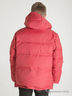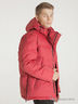 Пуховик средней длины, центральная застёжка - молния, наружная планка на кнопках, воротник – стойка из основной ткани, капюшон отстегивается, карманы прорезные на молнии, по боковым швам расстегивающиеся молнии, внутри куртки имеется снегозащитный пояс, в рукавах трикотажные манжеты, утеплитель пух.