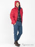 Пуховик прямого кроя и умеренной длины, застегивается на молнию с довольно широкой ветрозащитной планкой на кнопках. Имеет воротник-стойку внутренняя часть которого отделана контрастной тканью, удобный отстегивающийся капюшон, прорезные боковые карманы на молнии, а также нагрудный карман на молнии. Рукава дополнены внутренними трикотажными манжетами.