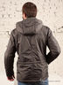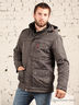 Куртка демисезонная, удлинённая, центральная застёжка - молния, наружная планка на кнопках, воротник – стойка, верхний воротник из основной ткани, нижний из трикотажа, капюшон отстегивается, нагрудные карманы прорезные с молнией, нижние карманы накладные с клапанами, на талии кулиска, изделие на подкладке.