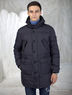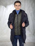 Мужская удлиненная куртка приталенного силуэта, с капюшоном. Молния закрыта ветрозащитной планкой на пуговицах. Внутренняя имитация жилетки делает куртку стильной и дополнительно защищает от ветра. Пуговицы на передней планке придают куртке дополнительный элегантный стиль. Капюшон не отстегивается, нагрудные прорезные карманы с клапанами на кнопках, нижние накладные карманы с клапанами на пуговицах и боковым входом на магнитной кнопке, по талии куртки идет кулиска для регулировки. Куртка имеет внутренне карманы, в рукавах трикотажные манжеты.