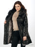Детали: отложной воротник с отстегивающимся мехом, застегивается на молнию и кнопки, спереди 2 прорезных кармана на молнии, талия подчеркнута поясом