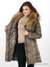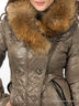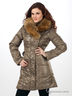 Детали: отложной воротник с отстегивающимся мехом, застегивается на молнию и кнопки, спереди 2 прорезных кармана на молнии, талия подчеркнута поясом