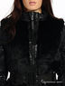 Комбинированная куртка c эффектной меховой отделкой. Застежка на молнию. Декорирована эластичным поясом с металлической пряжкой. Рукава отстёгиваются от изделия. Внутри - шелковистый подклад.