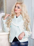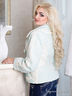 Куртка женская демисезонная, выполненная из двух видов итальянской шерстяной ткани, прилегающего силуэта с втачными рукавами. Рукав с манжетой. Воротник - шалевой ассиметричный. Подкладка- нейлон. Куртка декорирована вставками из отделочной ткани на рукаве, воротнике и клапане, строчкой имитирующий ручной стежок, тесьмой. Карманы- прорезные с клапаном. Застежка двубортная на одну пару пуговиц и кнопку. Длина изделия по спинке 57 см. С размером длина незначительно увеличивается. Длина рукава 65см.