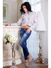 Куртка женская демисезонная, выполненная из итальянской шерстяной ткани, прилегающего силуэта с втачными рукавами. Воротник- отложной. Подкладка- нейлон. Куртка декорирована патами на плечах и рукаве и пуговицами. Карманы- прорезные с клапаном. Застежка двубортная на две пары пуговиц. Длина изделия по спинке 46 см. С размером длина незначительно увеличивается. Длина рукава 65см.