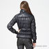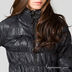 Стильная куртка с большим воротником-стойкой. Воротник двойной, внутренний воротник и манжеты рукавов выполнены в виде трикотажной резинки. Застежка-молния, пояс и внешний воротник на кулиске, по бокам врезные карманы. Наполнитель: синтепон.
