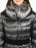 Детали: отложной воротник с отстегивающимся мехом лисы, длинные рукава, застегивается на молнию, спереди 2 прорезных кармана на молнии, внутри 1 карман, талия на поясе с металлической пряжкой