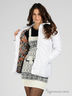 Стильная белоснежная куртка с воротником-стойкой и длинными рукавами. Куртка застегивается на молнию. По бокам изделия и на груди – втачные карманы на молнии. Подкладка из полиэстера и внутренняя поверхность карманов украшена оригинальным принтом.