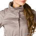 Утеплённая женская куртка нежных пастэльных цветов с рукавом "реглан" и контрастным лаковым ремешком.