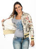 Детали: ворот-стойка, сзади собирается на шнурок; застегивается на металлическую молнию; резинка и манжеты в рубчик, декорированы контрастными полосами; два накладных кармана; изделие декорировано оригинальным принтом