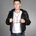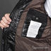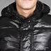 Стеганая мужская куртка. Застежка-молния закрыта клапаном на кнопках, воротник-стойка с капюшоном, длинный рукав, манжеты и ворот - трикотажная резинка, два внешних кармана и два внутренних кармана.