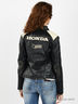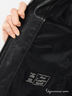 Великолепная куртка из плотной фактурной кожи. Ворот-стойка с застежкой на кнопку. Застежка на металлическую молнию. Длинные рукава с разрезами на манжетах на молнии. На полочках два прорезных кармана. Полочки, спинка и рукав декорированы нашивками. Куртка декорирована потертостями.