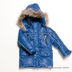 Куртка для мальчика, утепленная, с хлопковым подкладомКуртка голубого цвета с воротником стойкой. Отстегивающийся капюшон с опушкой из натурального меха, которую тоже можно отстегнуть.