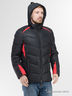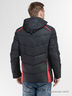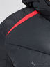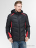 Куртка зимняя, утеплитель - акрил, с отстегивающимся (на молнии) капюшоном, по обе стороны имеется кулиска для регулирования объемов капюшона. Застежка - молния. Два наружных косых кармана на молнии, прикрытые планкой. Внутри -3 кармана: справа - горизонтальный, слева - горизонтальный на кнопке и вертикальный на молнии. На рукаве, на плечах и спереди куртки, красные вставки. Снизу куртки - кулиска для регулирования объема. Внутри рукава- трикотажный манжет.