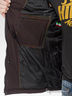 Куртка зимняя, утеплитель - акрил, с отстегивающимся (на молнии) капюшоном, по обе стороны имеется кулиска для регулирования объемов капюшона. Застежка - молния (двухсторонняя), прикрытая планкой на кнопках. Два накладных кармана на двух кнопках, с каждой стороны, на груди два косых кармана на молнии. На левом рукаве маленький вертикальный карман на молнии. Внутри -3 кармана: справа - горизонтальный, слева - горизонтальный на кнопке и вертикальный на молнии. Внутри рукава- трикотажный манжет.