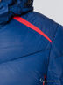 Куртка зимняя, утеплитель - акрил, с отстегивающимся (на молнии) капюшоном, по обе стороны имеется кулиска для регулирования объемов капюшона. Застежка - молния. Два наружных косых кармана на молнии, прикрытые планкой. Внутри -3 кармана: справа - горизонтальный, слева - горизонтальный на кнопке и вертикальный на молнии. На рукаве, на плечах и спереди куртки, красные вставки. Снизу куртки - кулиска для регулирования объема. Внутри рукава- трикотажный манжет.
