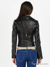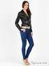 Детали: отложной ворот с лацканами; застегивается на металлическую молнию; длинный рукав на кнопке; два прорезных кармана на молнии; на поясе шлевки, в которые продет ремешок; декорирована молниями