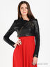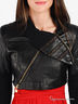 Детали: застегивается на металлическую молнию; прорезной карман на молнии; длинный рукав и спинка изделия дополнены трикотажными вставками; ворот стойка переходит в оригинальную декоративную деталь со стразами; на спине шнуровка