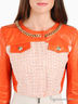Детали: окантовка круглого выреза декорирована цепочкой; застегивается на металлическую молнию; длинный рукав с манжетой на кнопке; два кармана с клапаном на пуговице; оригинальные тканевые вставки