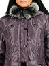 Детали: воротник стойка с отстегивающимся искусственным мехом, капюшон на кнопках и кулиске, застегивается на молнию и кнопки, спереди два прорезных кармана декорированы листочками на металлической кнопке, шлевки для пояса, пояс в комплекте подчеркивает талию
