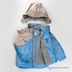 Утепленная детская куртка прямого кроя. Капюшон на кнопках и липучке, по краю сбоку резинки. Застегивается на молнию и клапан с липучками. Спереди два накладных кармана на кнопках, один на молнии, карман на рукаве, внутри карман для телефона. Манжеты со снегозащитой: внутренний на мягкой эластичной резинке, внешний регулируемый, на резинке и липучке. Система вентиляции подмышками. По низу куртки утяжка. Украшен вставками на карманах и вороте. Концы молний закрыты клапаном. Материал куртки не пропускает воду и "дышит", основные швы проклеены. На рукавах, воротнике, внутренней части карманов и капюшоне мягкая подкладка из флиса.