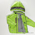 Модель прямого кроя с капюшоном. Воротник-стойка с ярко-зеленой подкладкой. Капюшон отстегивается, крепится на кнопки, по краю трикотажная резинка. Застегивается на молнию. Два передних кармана на молнии, один скрытый карман на груди, оформленный ярко-зеленой вставкой. Внутри небольшой карман на липучке. Манжеты со снегозащитой на трикотажной ярко-зеленой резинке. Концы молний закрыты клапаном. Материал куртки не пропускает воду и "дышит", основные швы проклеены. На воротнике, внутренней части и капюшоне мягкая подкладка из флиса.