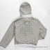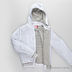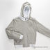 Серая трикотажная сторона. Два передних кармана. Ворот - трикотажная резинка. Декоративная аппликация на спинке, вышивка на полочке.