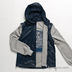 Модель прямого кроя с воротом-стойкой застегивается на молнию. Пришитый капюшон прячется в скрытый кармашек на липучке в воротнике. Ворот затягивается шнурком. В подол вставлена функциональная резинка. Два передних кармана. Хлопковые рукава с трикотажными манжетами-резинками отстегиваются. Хлопковый подклад с принтом в цвет рукавов.
